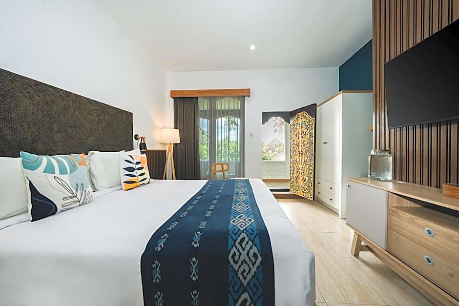 Featuring Balinese doors and large windows, this room comes with an open balcony with a beautiful garden view.